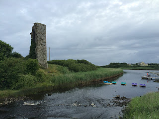 The first of the two walks I'm going to write about took place on the 8th July. I was up early and got underway by 06:10. It was one of those filler-inner walks that was just dull. The roads were long and fairly straight and far enough in from the coast that your only views were fields and cows - which are fine once in a while or as colour along an otherwise interesting walk - but when it's mostly roads/field/cows the boredom factor goes into overdrive. I parked Minty next to the church in Doonbeg and set off. The river running alongside the castle ruins seemed to promise some interest as I left but it was a trap!
